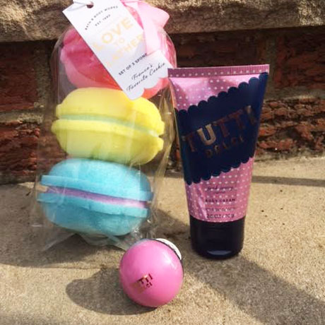 The Tutti Dolci line products include the Body Cream, Shower Gel, Fine Fragrance Mist, Lip Balm and the Creamy Body Wash. You can also get a cute sponge pack and a make-up bag.