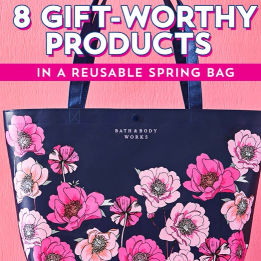 The Bath & Body Works Mother’s Day Spring Tote went live on Wed. April 22nd as a purchase with purchase. Spend $30 and get the bag for $30.