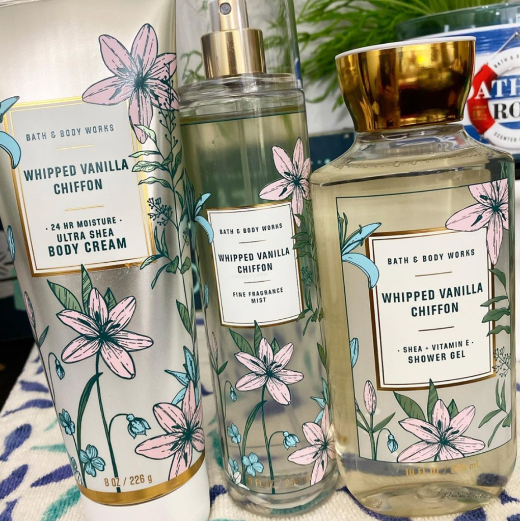 One of my new favorite Bath & Body Works scents is Whipped Vanilla Chiffon! It comes in the Body Cream, Body Lotion, Shower Gel and Fine Fragrance Mist. It also comes in the travel sizes!