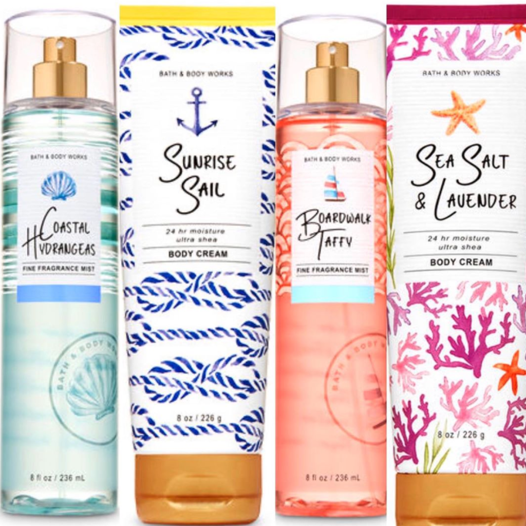 Bath & Works Works released 4 new Summer scents online today including Costal Hydrangeas, Sunrise Sail, Boardwalk Taffy and Sea Salt & Lavender.