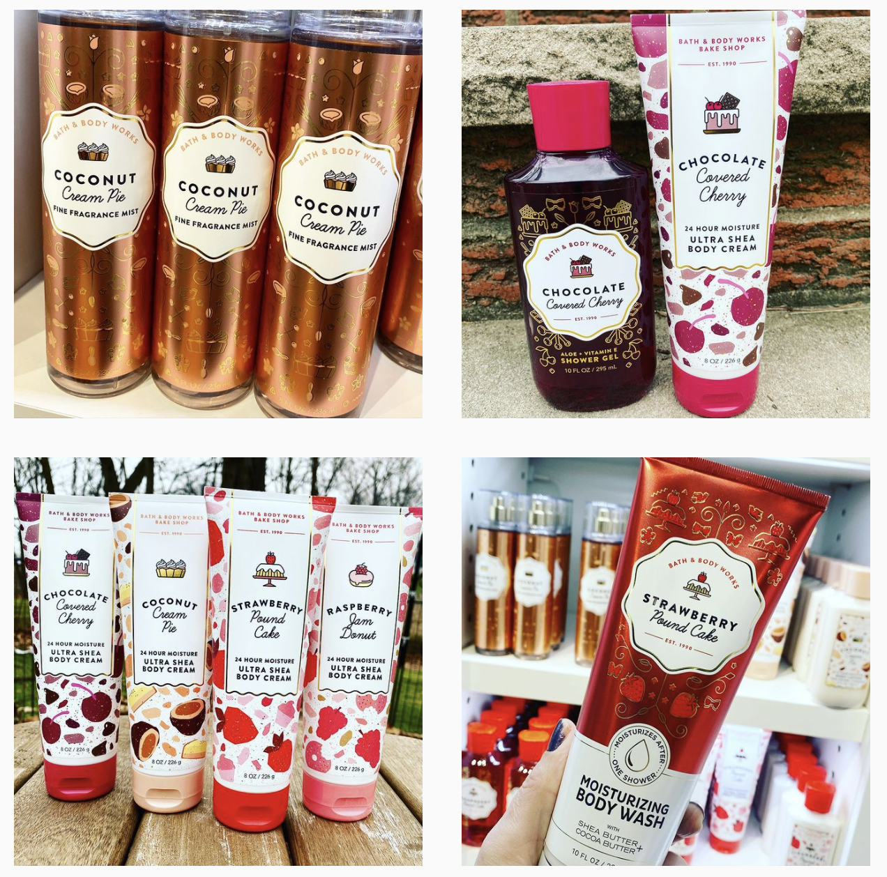 Strawberry Pound Cake will also have the Moisturizing Body Wash, Whipped Bath Foam, Lip Scrub and Lip Gloss along with the Fine Fragrance Mist, Body Cream, Body Lotion and Shower Gel.