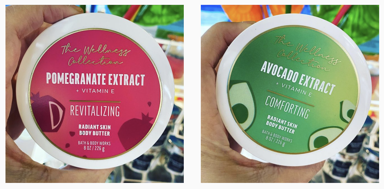 Bath & Body Works is starting to roll on their brand new “The Wellness Collection” that includes products with Avocado Extract, Blueberry Extract, Coconut Water and Pomegranate Extract. The collection has no artificial dyes.