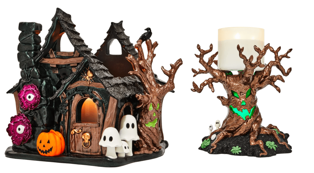 This year features Wicked Vanilla Woods and Enchanted Candy Potion Body Care. A huge haunted house luminary, brand new Halloween water globes, a new 3-wick bust candle holder, lots of witch hands, Halloween Candles, Halloween Pocketbac Holders, Halloween Anti-Bacterial Spray, an adorable cat single-wick candle holder, Halloween Wallflowers Plugs and so much more!