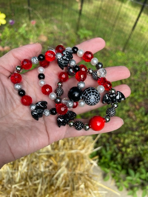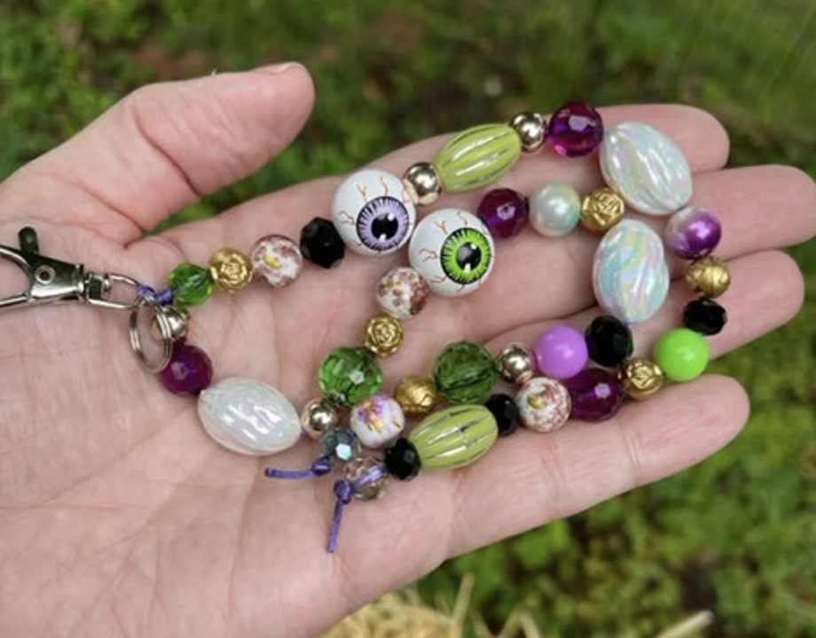 We’re creating handmade beaded Halloween Purse Charms and Bracelets in our Etsy shop at https://www.etsy.com/shop/QueenOfTheGirlGeeks