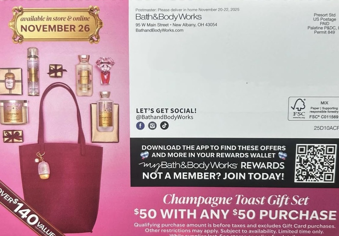Starting November 26th, 2025 you will be able to get the Bath & Body Works Champagne Toast Gift Set (approximate retail value over $140).