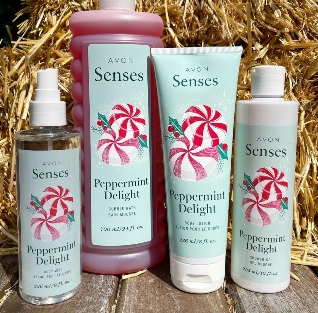 Get Peppermint Delight in Avon Bubble Bath, Shower Gel, Body Lotion and Body Mist.
