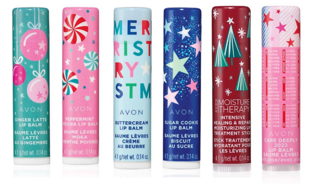 The 2021 Avon Holiday Lip Balms come in Candy Cane, Sugar Cookie, Marshmallow and Buttercream. They moisturize with a glossy finish an a sheer, flavorful coverage!